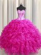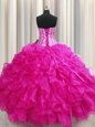 Home >  Quinceanera Dresses >  Fast Delivery Quinceanera Dresses > Pretty Visible Boning Fuchsia Organza Lace Up Sweetheart Sleeveless Floor Length Quinceanera Gown Beading and Ruffles