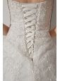 This is a fabulous wedding gown will ensure that princess moment on your day. The strapless dress has a subdued sweetheart shape and laced embellishments throughout the bust. The stunning and sophisticated lace embroidered accents are really eye-catching which strech into the hip and the back.A corset-style closure secures the dress in place and ensures a great fit.