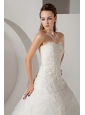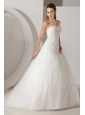 Pretty Wedding Dress A-line Sweetheart Appliques Court Train Tulle