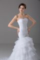 Pretty White Bridal Gown Sweetheart Sleeveless Brush Train Lace Up
