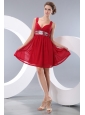 Pretty Wine Red Empire Straps Sequins Junior Prom / Homecoming Dress Mini-length Chiffon