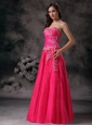 Prettz Hot Pink A-line Sweetheart Formal Prom Dress with Beading