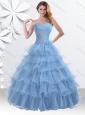 Princess Baby Blue Sweet 16 Dress with Beading and Ruffled Layers