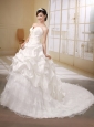 Princess Chapel Train Sweetheart Neckline Pick-ups Decorate Taffeta Organza and Lace Wedding Dress Popular