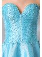 Princess Light Blue Sweetheart Mini-length Beading Prom Dress