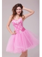 Princess Rose Pink Sweetheart Appliques Short Prom Dress