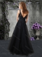 Princess Scoop Black Mother of  The Bride Dress with Beading and Appliques