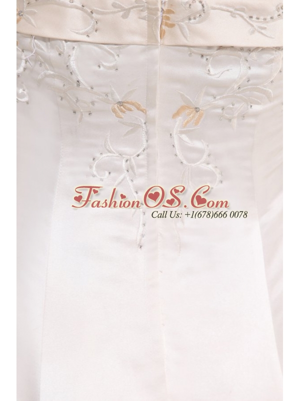 Home >  Wedding Dresses >  Perfect Wedding Dresses > Princess Strapless Court Train Satin Champagne Wedding Dress with Embroidery