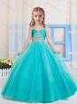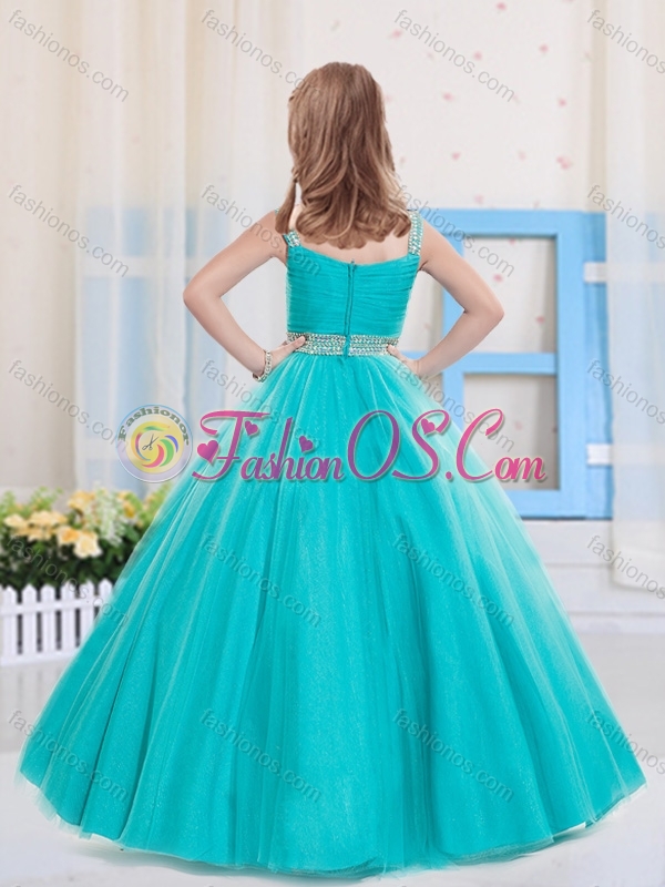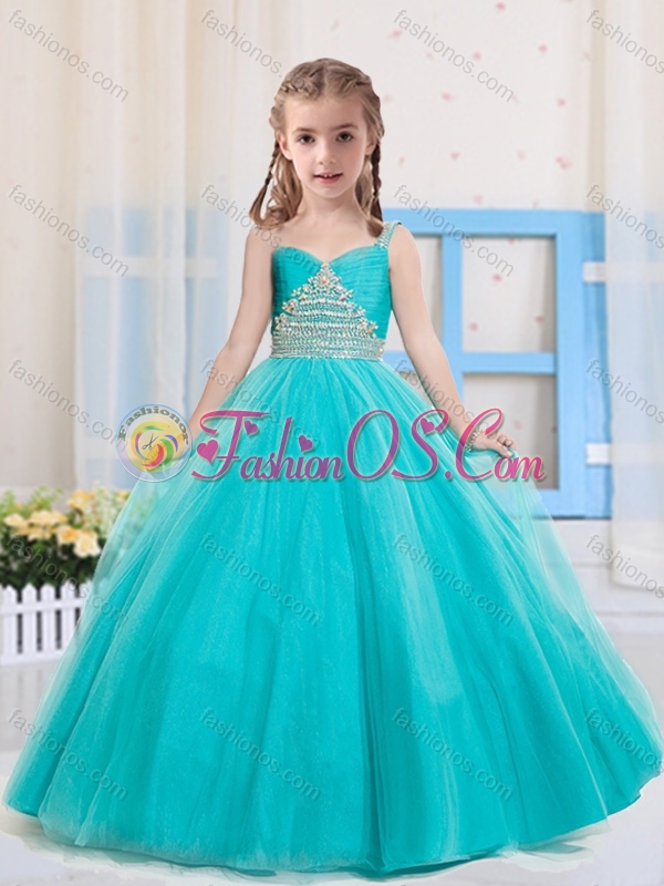 Home >  Special Occasion Dresses >  New Style Little Girl Pageant Dresses > Princess Straps Floor Length Tulle Aqua Blue Little Girl Pageant Dress with Beading