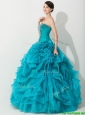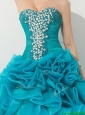 Princess Teal Sweet 16 Dress with Beading and Rolling Flowers