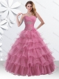Princess Watermelon Red Sweet 16 Gown with Beading and Ruffled Layers