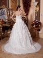 You will be the most beautiful bride in the world in this amazing white wedding dress! This creation is accented with a modified sweetheart neckline and overflowed with dazzling beading, just like the firework shot into the sky. The A-line skirt is scattered with appliques, which beautify the dress and an adjustable zipper up in the back completes this fabulous design. You are sure to be the most beautiful bride. What are you looking for? Just this one!