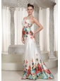 Can't decide what to wear to attend prom or party? Get the best of this elegant and breathtaking evening dress for prom, homecoming or special occasion party. This stunning prom dress with colorful print will let you show yours off with an elegant and sophisticated style. The ruched bust with shimmering beading defines your fighure perfectly. The glamorous floor length skirt adds an elegant touch to this magnificent long formal dress for prom.