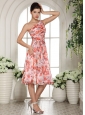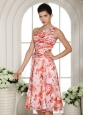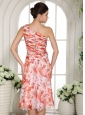 Home >  Prom Dresses >  Unique Prom Dresses > Printing One Shoulder Tea-length Homecoming Dress For Custom Made