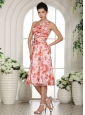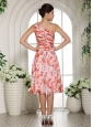 Printing One Shoulder Tea-length Homecoming Dress For Custom Made
