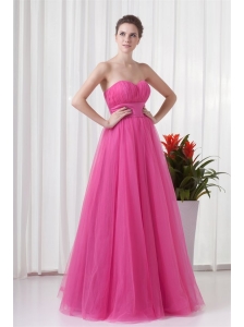 A-line Tulle Sweetheart Hot Pink Ruching Long Prom Dress