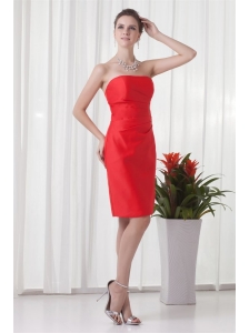 Column Strapless Mini-length Red Ruching Taffeta Prom Dress