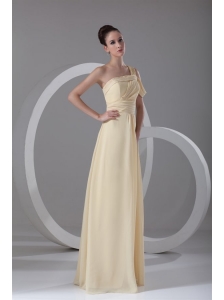 Elegant Empire One Shoulder Chiffon Ruching Champagne Prom Dress