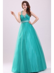 Turquoise Hatter Top Beading and Ruching Prom Dress