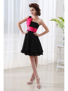 Black Lovely Prom Dress with A-line One Shoulder Chiffon Belt