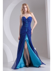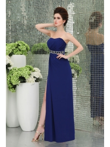 Column Blue Sweetheart Beading High Slit Chiffon Prom Dress