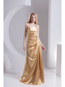 Column One Shoulder Taffeta Beading Ruching Gold Prom Dress