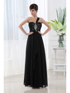 Empire Beading Chiffon Black One Shoulder Prom Dress