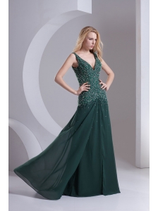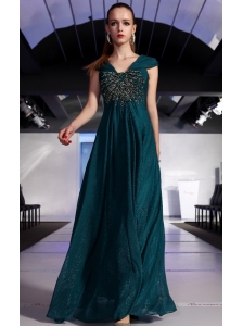 Dark Green Empire V-neck Floor-length Sequin Beading Prom / Evening Dress