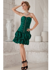 Dark Green Column Sweetheart Mini-length Taffeta Beading and Ruch Prom Dress