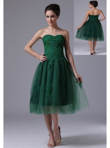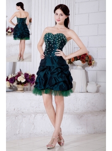 Dark Green Sweetheart A-Line Tulle 2013 Short Prom Dress With Beading
