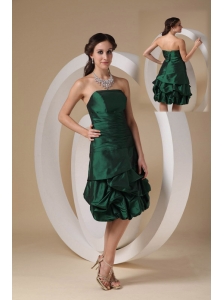 New Dark Green Column Cocktail Dress Strapless Taffeta Beading Knee-length