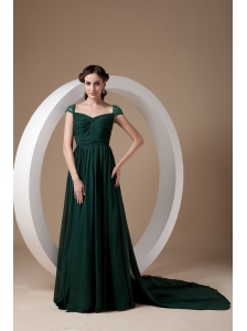 Classical Dark Green Empire Evening Dress Square Watteau Train Chiffon Beading