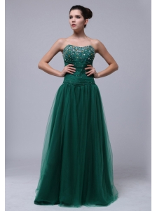 Dark Green Column Strapless Prom Dress with Beading and Flowers
