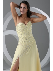 Sweep Train High Slit Light Yellow Prom Dress with Beading