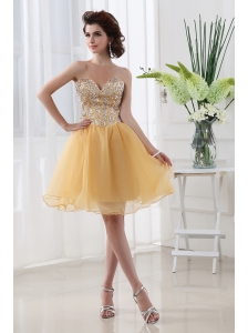 Gold A-line Beautiful Sweetheart Beading Organza Prom Dress