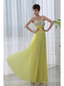 Empire Beading Sweetheart Beading Pleats Yellow Prom Dress