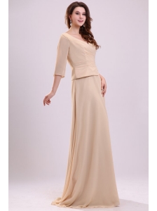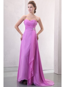 Cheap Blue Prom Dress Empire Straps Brush Train Chiffon Ruch