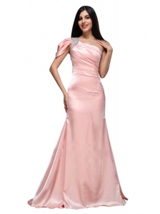 Turquoise Prom Dress with Bowknot and Ruching A-line One Shoulder