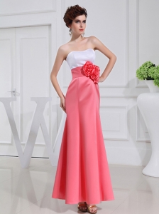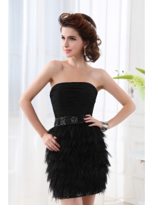 Hot Pink Empire Strapless Ruch and Sash Prom Dress Mini-length Chiffon