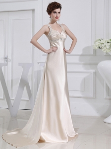 A-line Halter Top Floor-length Beading Elastic Woven Satin Prom Dress