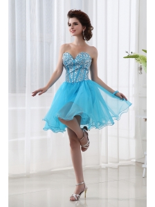 A-line Lovely Sweetheart Beading Baby Blue Prom Dress in Blue