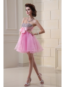 A-line Organza Prom Dress with Beading Ruchings Rose Pink Sweatheart