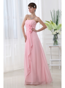 A-line Strapless Hand Made Flowers Chiffon Baby Pink Prom Dress