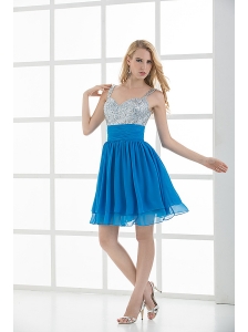 Empire Sweetheart Chiffon Beading Deep Sky Blue Prom Dress