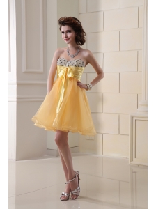 A-line Sweetheart Organza Ruching Mini-length Prom Dress in Gold