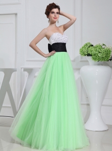 A-line Strapless Sleeveless Beading and Ruching Prom Dress