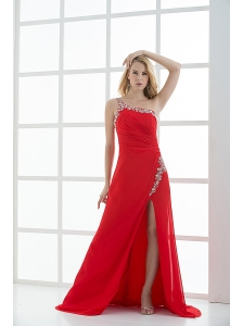 Empire One Shoulder Prom Dress with Beading and Ruching
