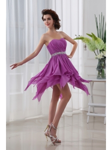 Fuchsia Empire Sweetheart Short Beading Ruching Chiffon Prom Dress