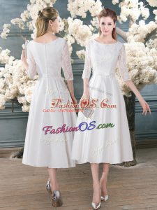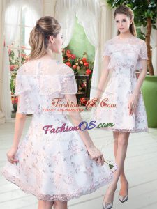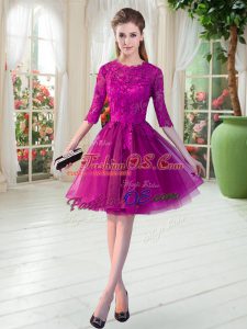 Excellent Floor Length Pink Prom Party Dress Scoop Half Sleeves Lace Up
