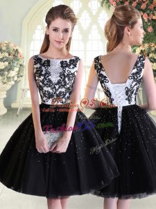 Edgy Mini Length Ball Gowns Sleeveless Black Prom Party Dress Lace Up